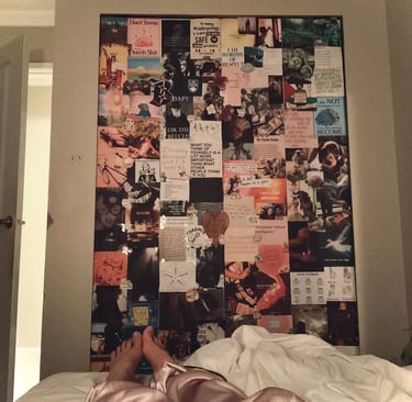 At night, when I lie in bed, it’s the last thing I see before I fall asleep. In the morning, it’s the first thing that greets me. Quotes, images, colors, fragments of art and memory—they stare back like a mirror of the self I am becoming.